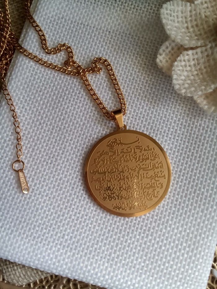 N.e'u.f prix ferme 💞 (réductions sur les lots) ☀️ pièce unique 👌 Chaîne en acier inoxydable 40 cm et 5 cm d'extension (Inscription concernant le verset du trône ) Si vous êtes intéressée par un lot (il faut m'envoyer les captures d'écran des articles concernés et je fais le lot 😉) : 🤍 Frais de port offert pour 2 articles 🤍 A partir de 3 articles je fais 10% sur le lot (sans déduction des frais de port) Vous trouverez aussi pierres naturelles semi précieuses d'améthyste jade labradorite kyanite ambre citrine pierre de lune onix libellule mortelle Adèle oracle magie wicca bohème fée boho cadeau bola royaumes de feu scarabé pendule sorcellerie ésotérisme dogna mode amulette bonheur ethnique santé guérison prière talisman huile Islam