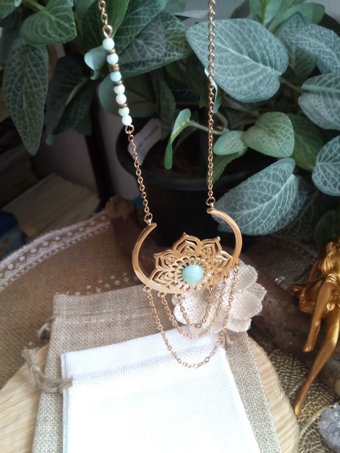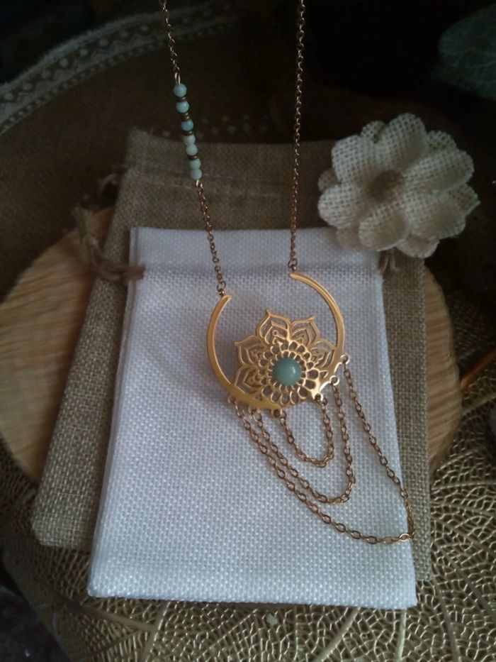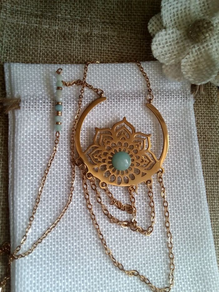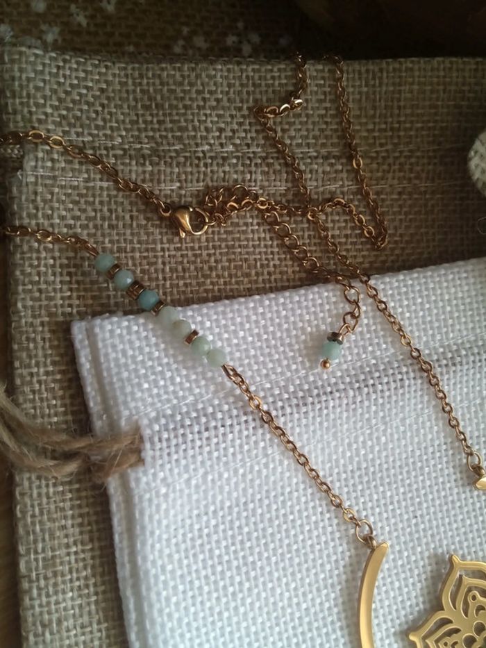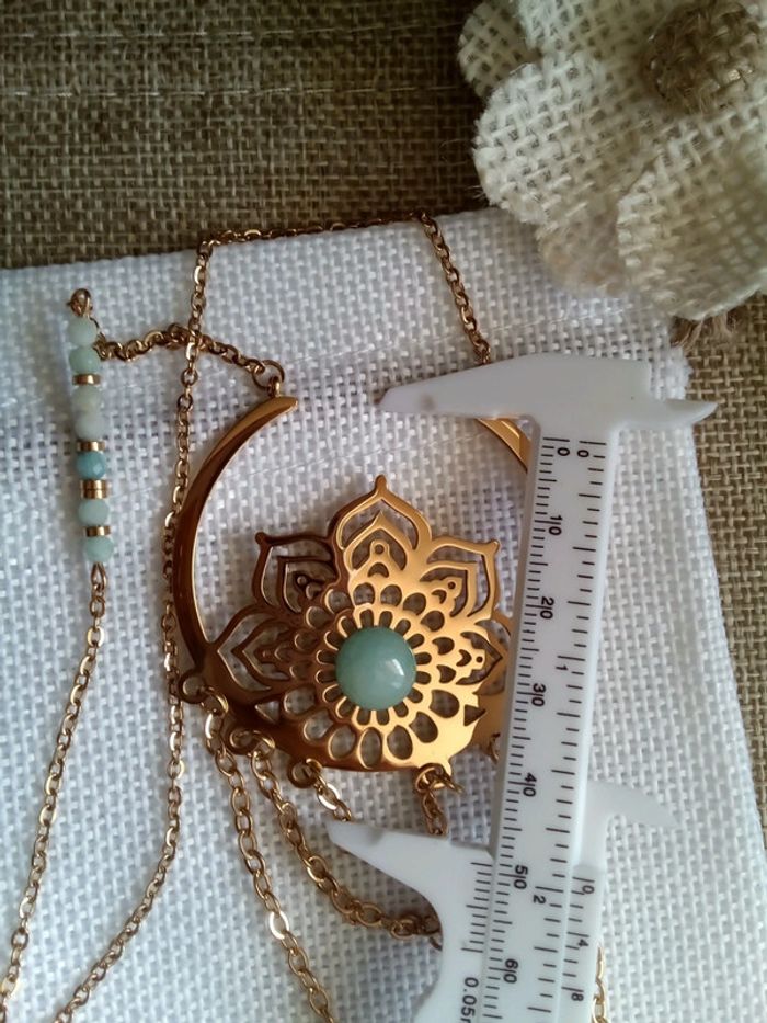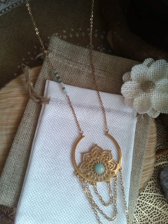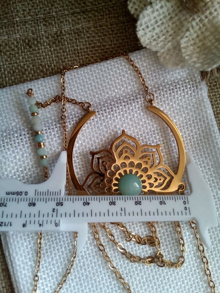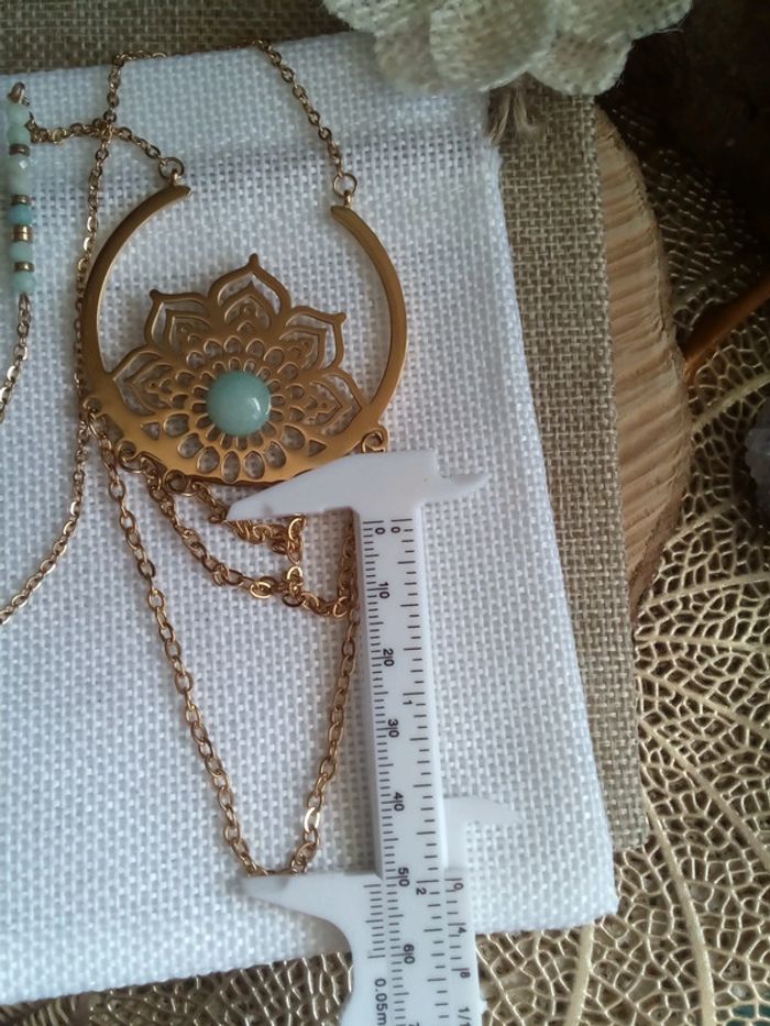 Collier fleur de vie acier inoxydable et pierres amazonites naturelles - photo numéro 9