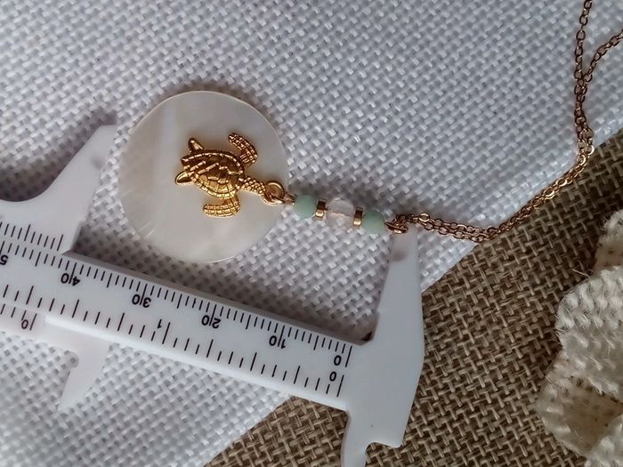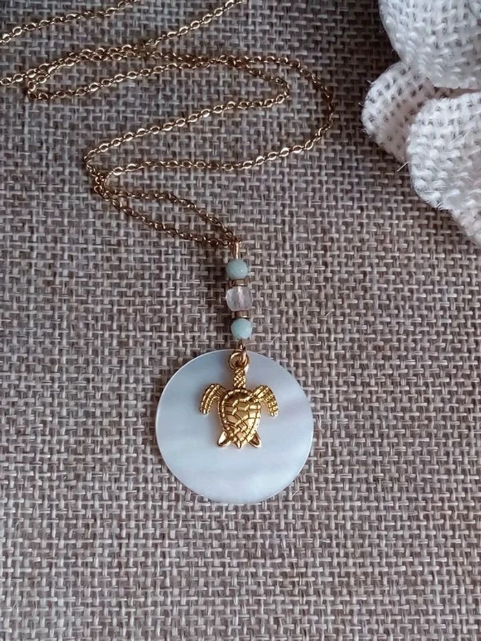 Collier n'a'c'r'e naturelle pierre de lune et d'amazonite+ tortue dorée - photo numéro 3