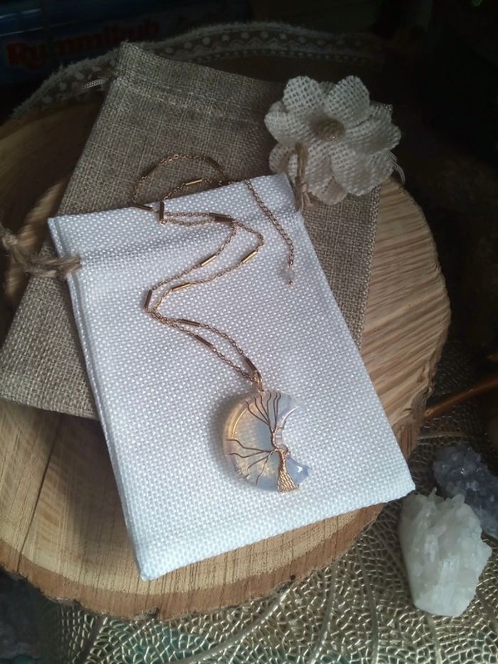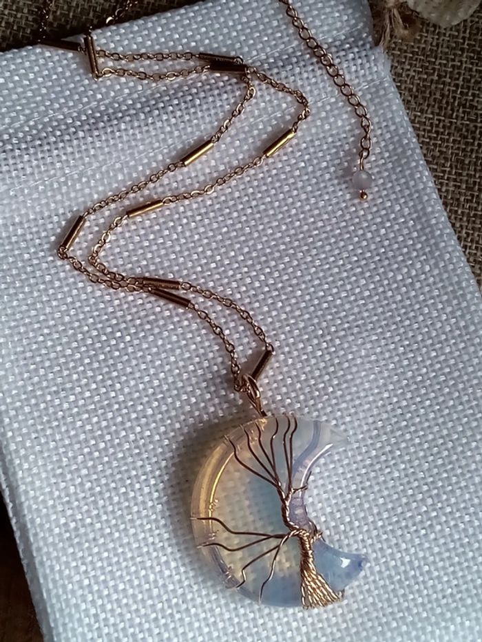 Collie lune en pierre opale