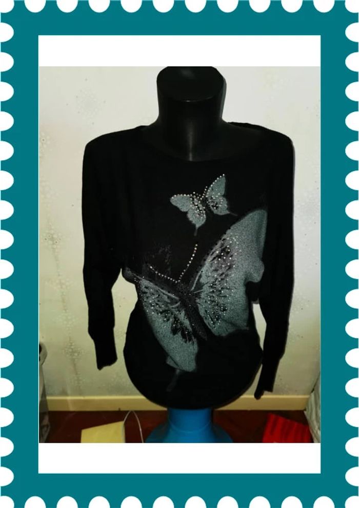pull noir motif papillon pour femme en S/M #labourseo80_femmeS/M N'hésitez pas à me contacter pour des achats multiples