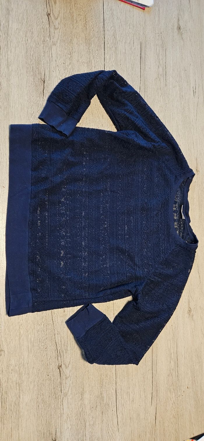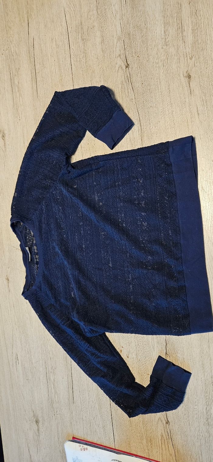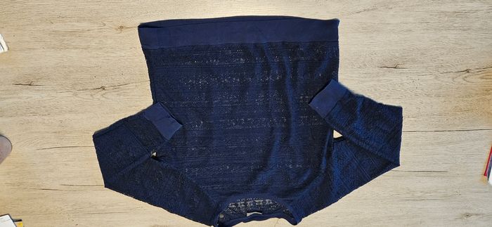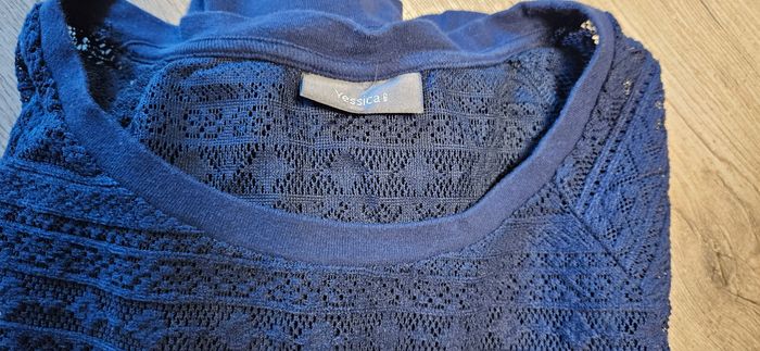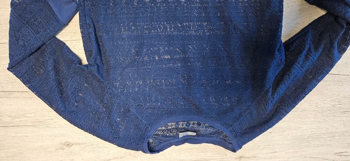 Blouse bleu foncé, manches longues, en dentelle, Yessica, taille 40/42, nickel - photo numéro 1