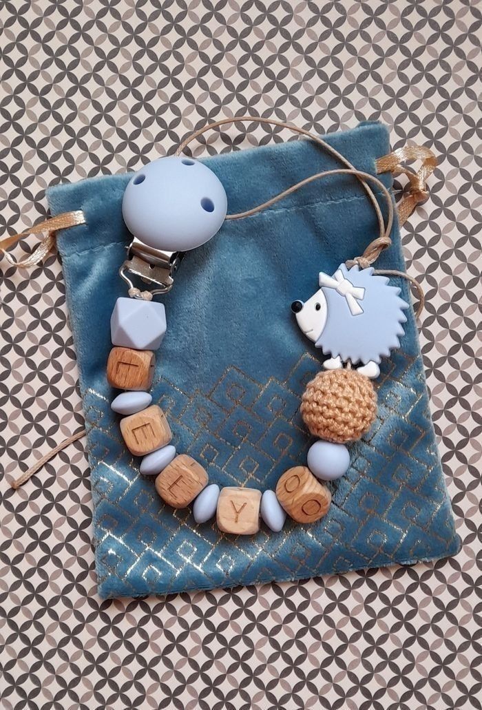 Attache tétine personnalisé avec le prénom de votre choix tout le matériel l utilisé est aux normes européennes . Perles en silicone ou en bois ou un mélange selon les modèles . En respectant les normes de sécurité pour bébé ,n'hésitez pas à regarder dans mon dressing il y a plus que 150 modèles et aussi à m'envoyer un message pour plus d'informations . 🔴 une petite remarque pour les prénoms qui sont très long il y aura forcément moins de perles sur les cotés ou quelques changements sur le modèle c'est pour respecter les normes de sécurité pour bébé il y a une langueur à respecter merci pour votre compréhension. 🔴Aussi l'utilisation de l'attache doit être sous surveillance et toujours vérifier si l attache tétine est intacte et les nœuds sont toujours bien fermés pour la sécurité de nos boutchous. Je vous remercie pour la lecture de ces consignes.