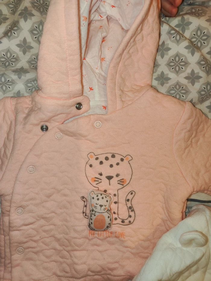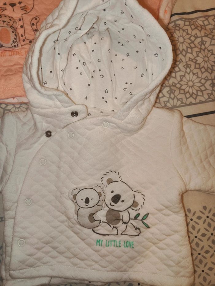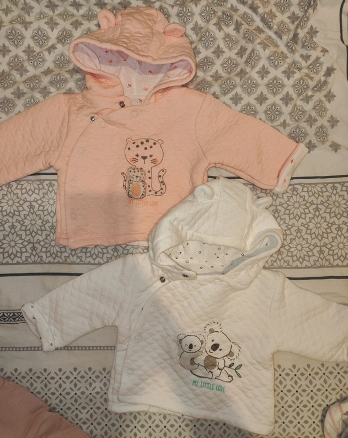 Jamais porté, totalement neufs Gilet / veste rembourrées fermeture cache cœur/ croisé avant avec oreilles sur capuche 3 mois 60 cm orchestra 6 euros a l'unité 10 euros les deux