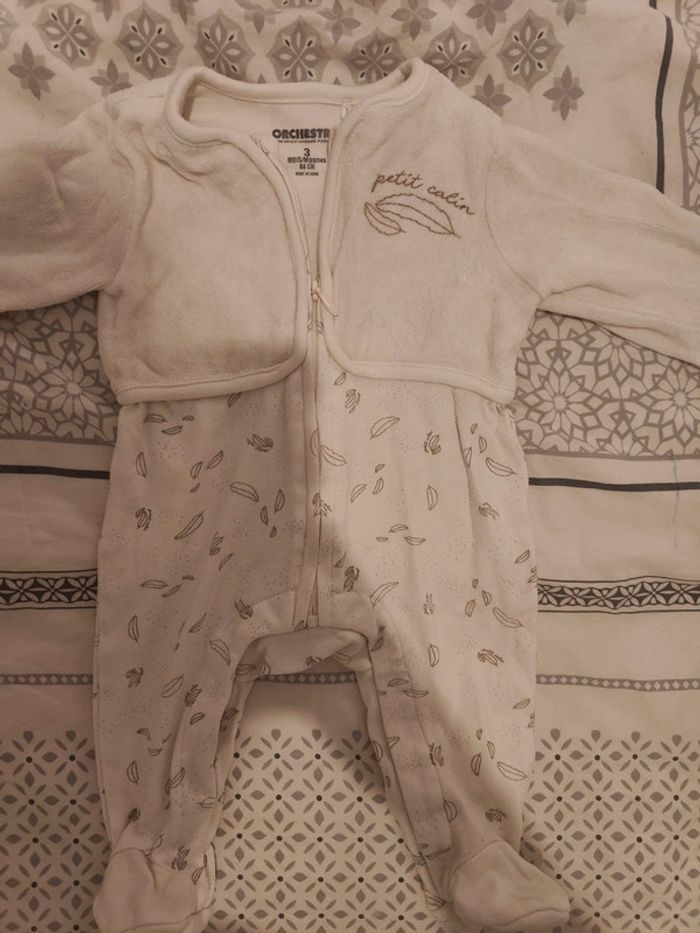 Combinaison velour 3 mois 60 cm ouverture avant orchestra - photo numéro 1