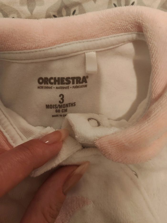 Combinaison velour 3 mois 60 cm ouverture avant orchestra - photo numéro 7