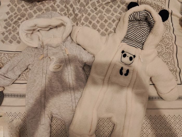 Combinaison pilote 3 mois neuves les deux jamais portés car devenues trop petites arrivé a l'hiver pour ma fille A l'unité 25 euros (prix neuf 39,99 euros a l'unité) Les deux à 45 euros.