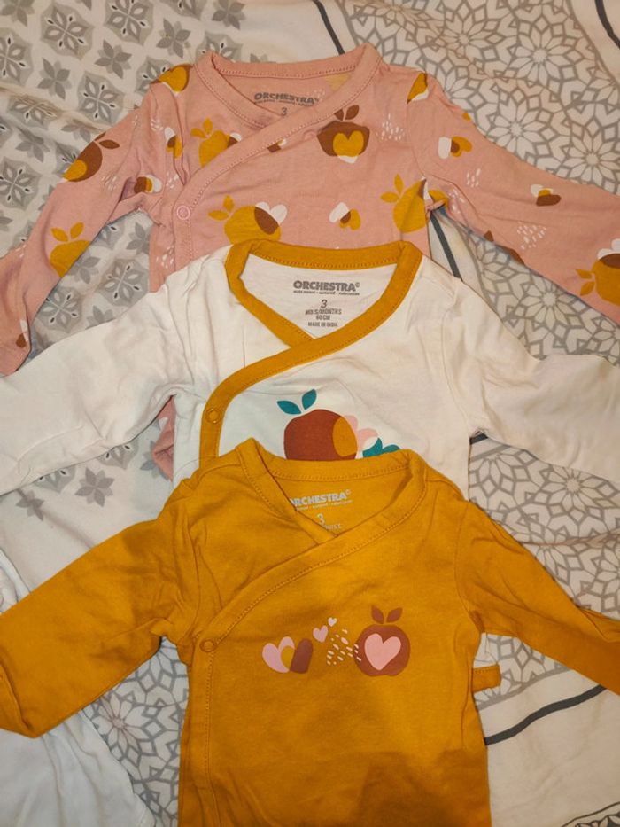 Body manches longues, fermeture cache cœur/ croisé avant 3 mois 60 cm orchestra - photo numéro 1