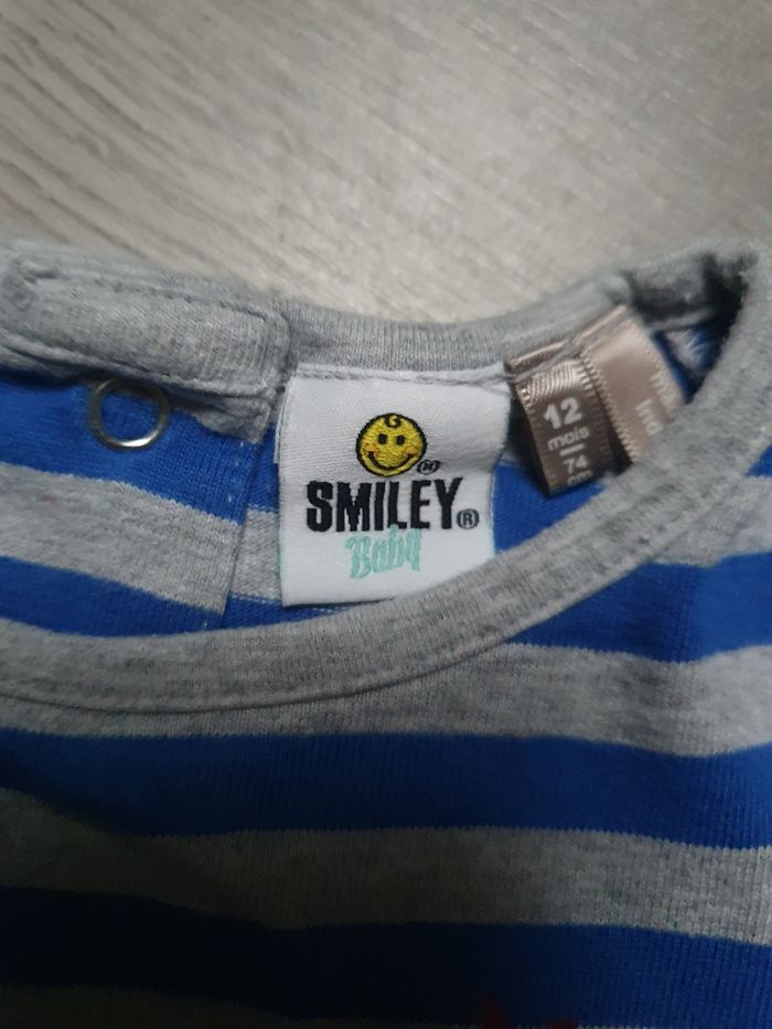 Maillot t-shirt manches longues 12mois garçon Smiley bleu gris jaune Orchestra D'autres vêtements disponibles N'hésitez pas a regarder