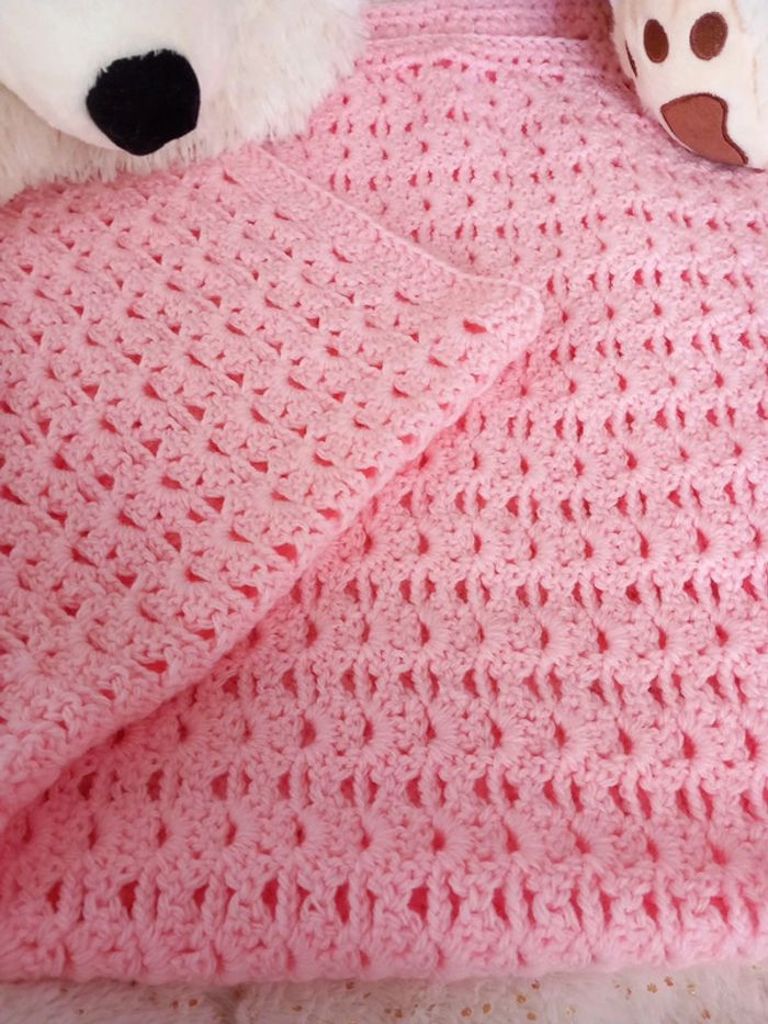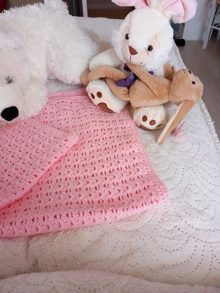 Couverture de berceau tricotée au crochet. 83 cm x 63 cm