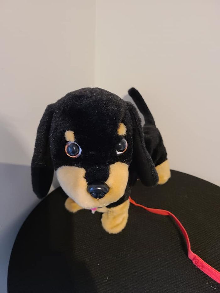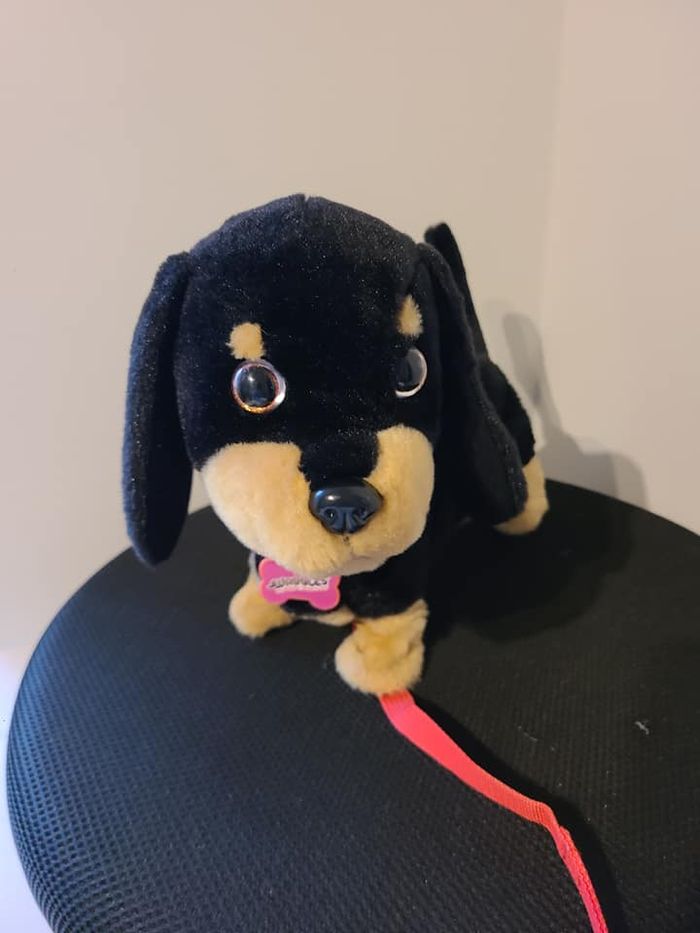 PELUCHE WAGGLES EN BALADE Qu’il est drôle Waggle ! Il se trémousse comme un vrai petit teckel lorsque tu le promènes : il marche, remue la queue, aboie... et adore les câlins ! Peluche à fonction. 1 laisse incluse. Longueur : 28 cm. 114