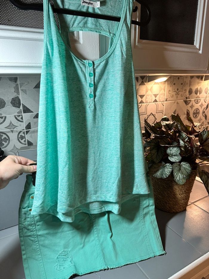 Top vert, jennyfer, taille 36, neuve. Possibilitée de le mettre avec la jupe en jeans (autre annonce)