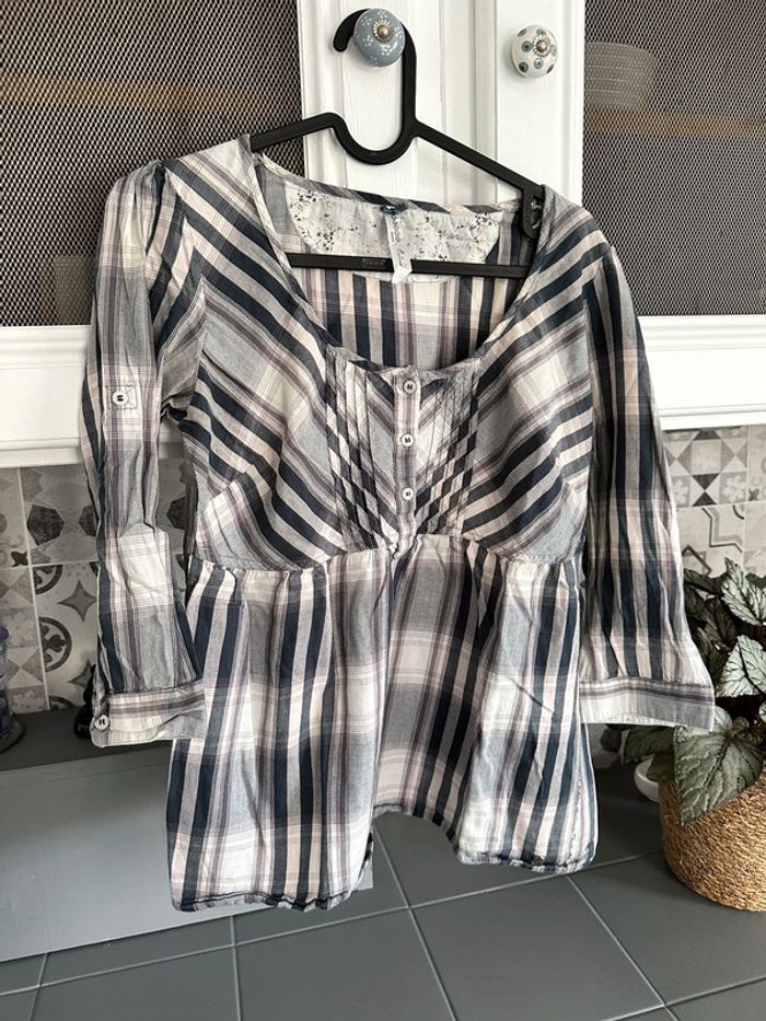 Blouse à carreau rose et bleu, bonobo taille m. Attention à été recousu sur le côté