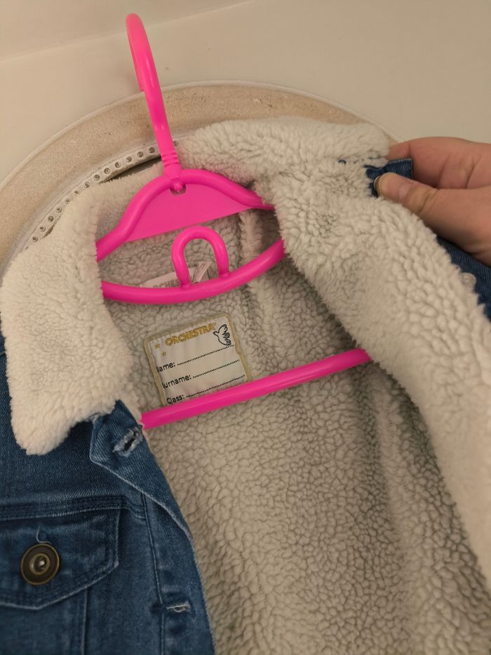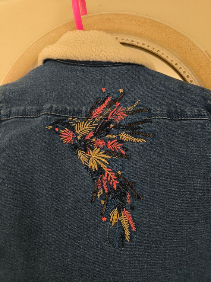 Veste en jean doublée sherpa. Motif oiseaux brodé au dos. En très bon état car très peu porté Taille 3 ans