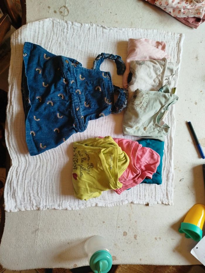 Une robe, 3 bodys à manches longues et 3 tee-shirts à manches longues. Peu porté