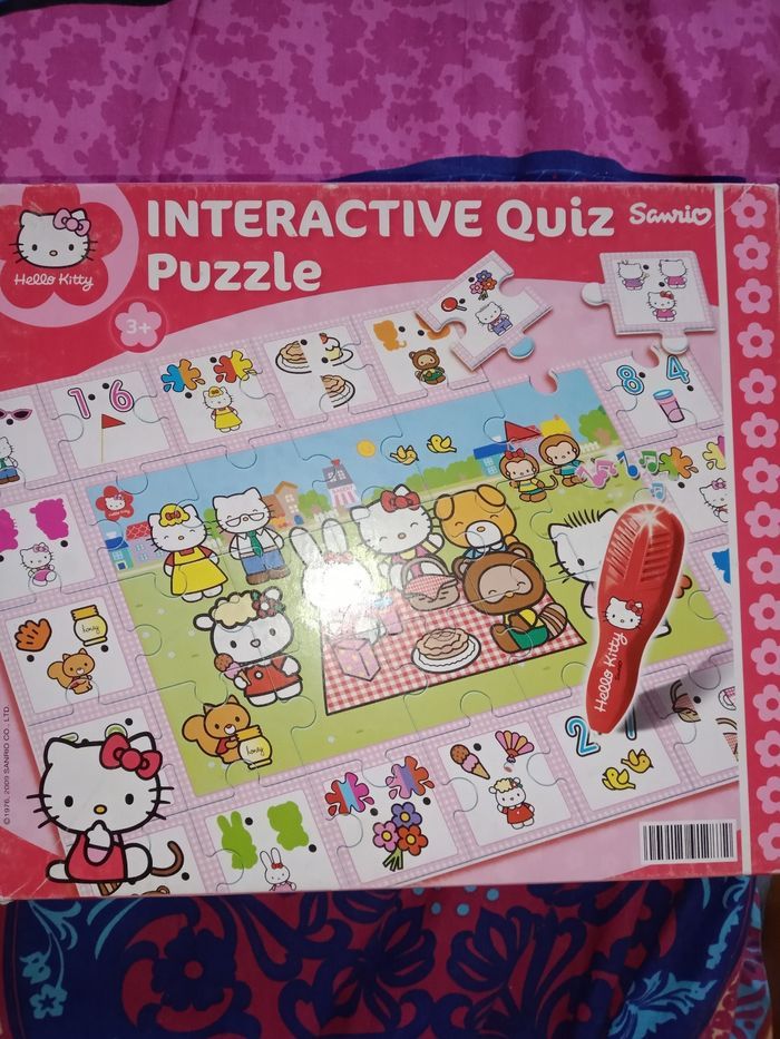 interactive quiz puzzle hello kitty "SAMRIO" 35 maxi pieces pour composer le puzzle (50 x 70 cm) et 1 stylo electronique indiquant la bonne réponse 3 ans et +