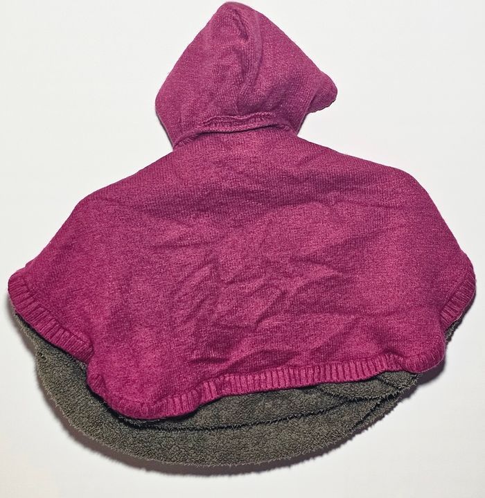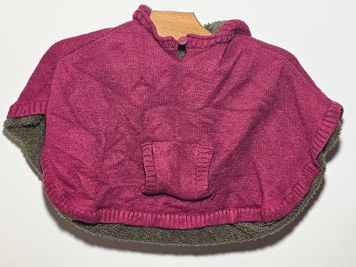 Bonjour. Vend poncho polaire enfants jusqu'à 6 ans de couleur bordeaux à l'extérieur et kaki à l'intérieur. Idéal en cette période froide. Le poncho possède une poche kangourou et également un bouton au niveau du colle.