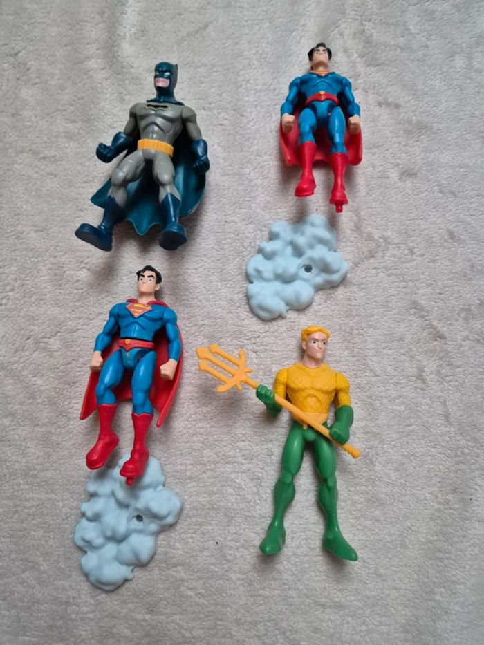 Parfait état 26€ le lot de 4 figurines Ou 6 € l unité - DC comics (voir inscription au dos de chaque figurine) 2 superman 1 barman 1 aquaman #korallie_jouet #dccomics #figurinedccomics #kinderdccomics