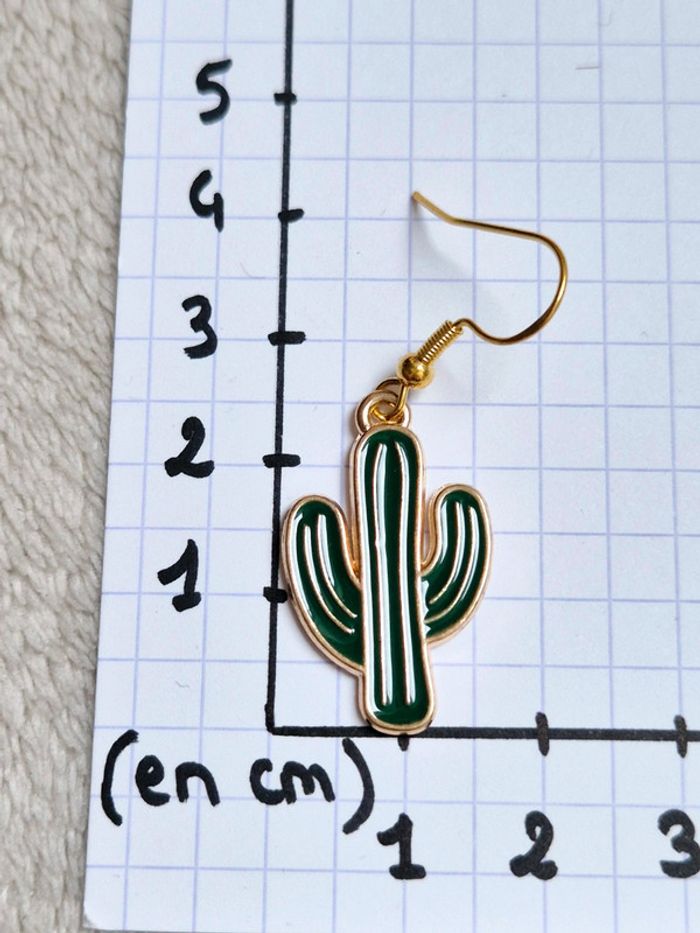 Parfait état, 0 défaut Paire de boucle d'oreilles, Cactus de couleur vert foncé Crochet en argent S925 doré (voir poinçon en photo) Voir dimensions en dernière photo Je vends ma collection de boucles d'oreilles, j'en ai pris grand soin #korallie_bouclesdoreilles #boucledoreilles #earrings #kawaii #mignon #cute #cactus #boucledoreillescactus