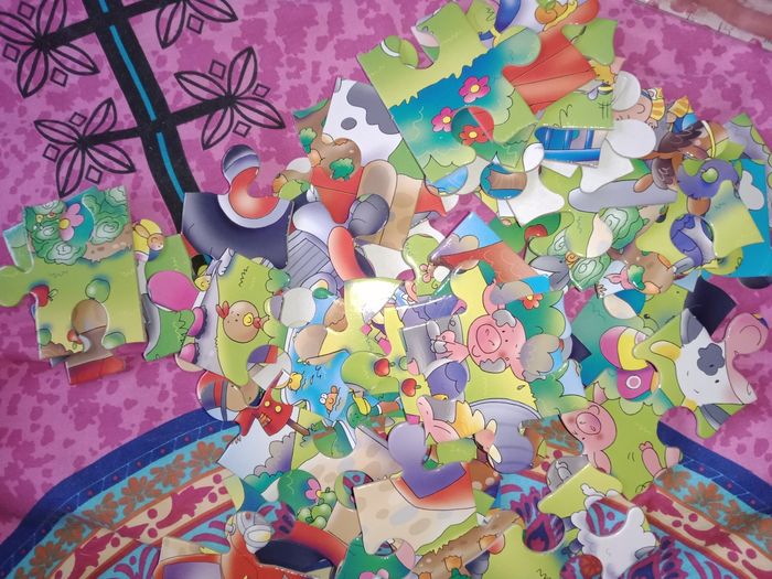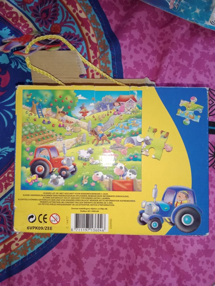 Puzzle de sol thème extérieur au jardin Puzzle de sol Thème jardin tracteur enfant fruits légumes... Quelques pièces légèrement plié 45 grandes pièces 40x50cm