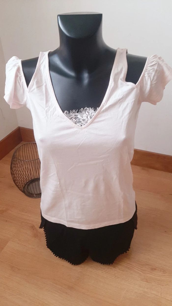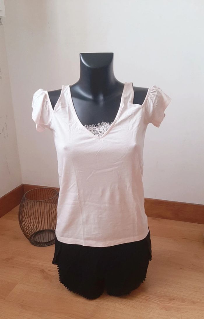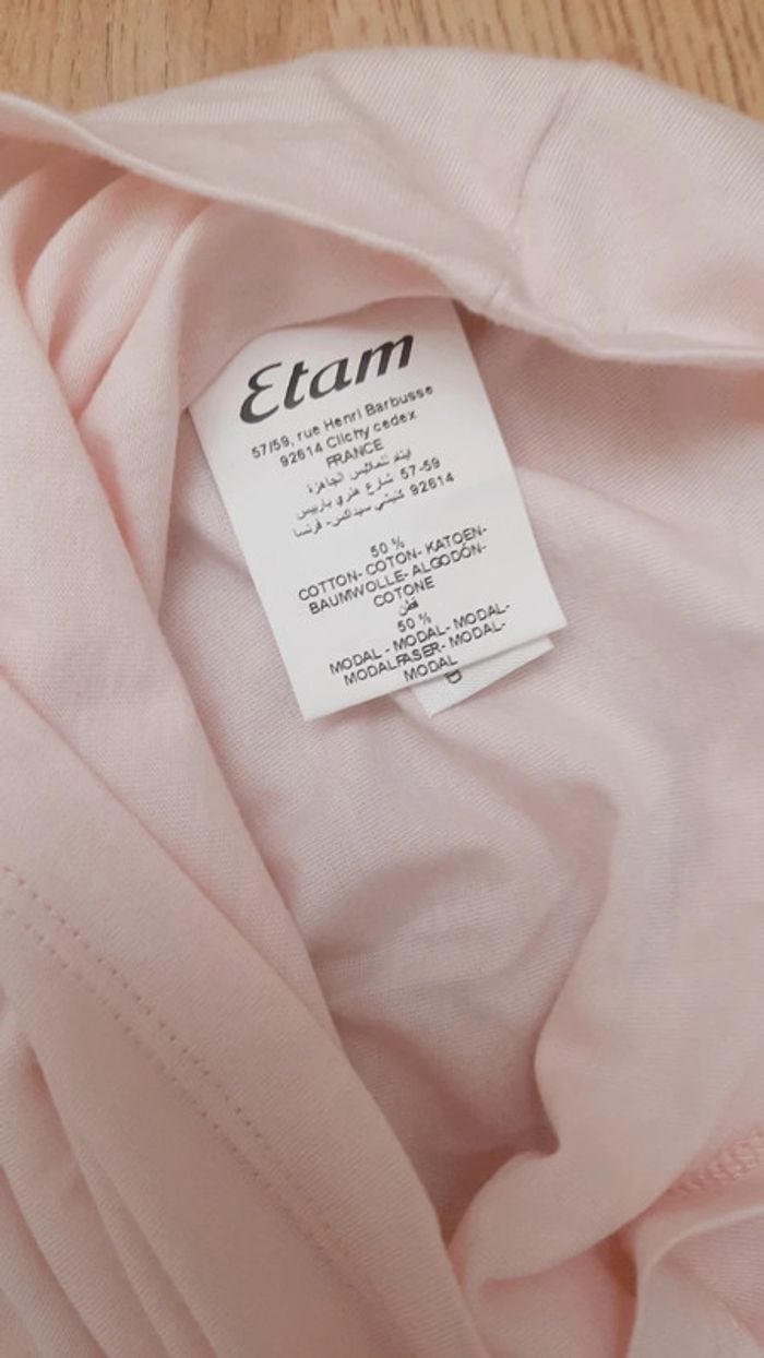 t-shirt rose pâle, de chez étam, taille 36 article lavé 1fois, et repassé jamais porté très belle matière, 50% de coton et 50% de modal je reste à votre disposition pour toute information complémentaire 🌺 🌺
