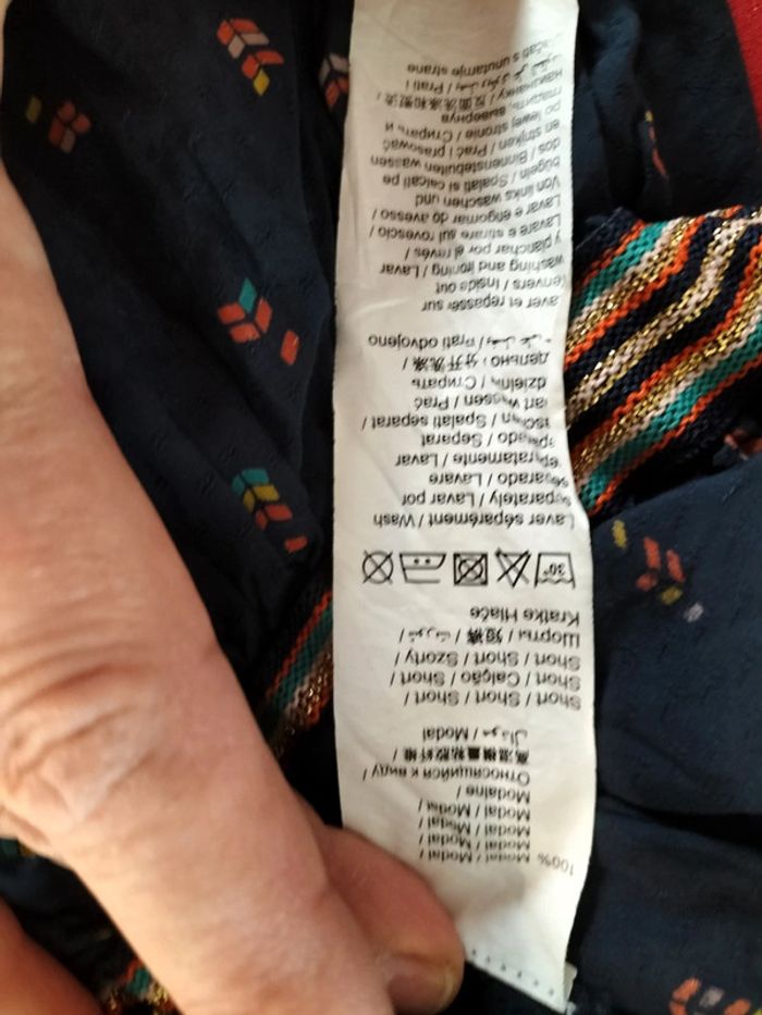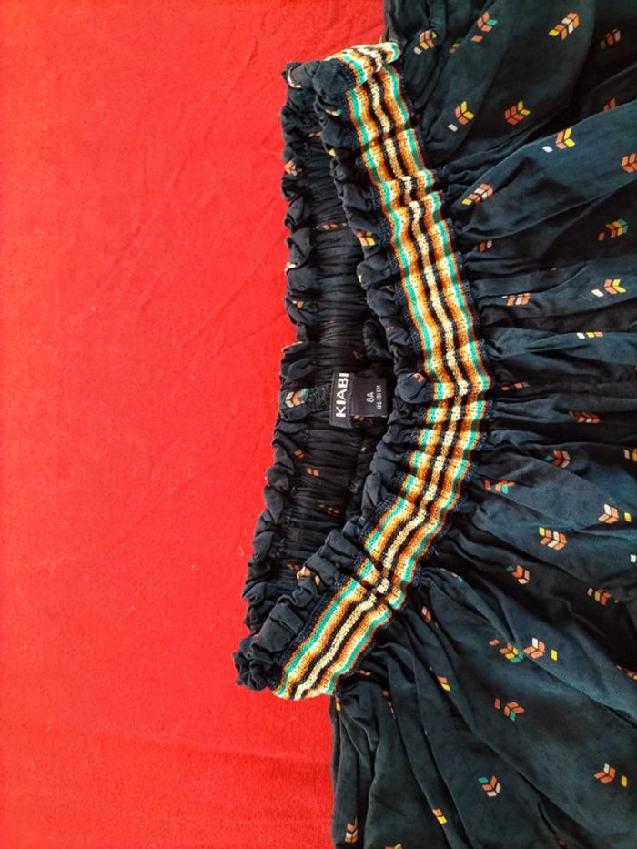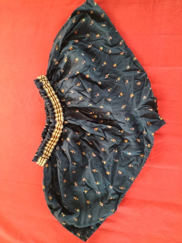 Jupe short bleu marine a motifs flèches multicolores en soie artificielle (100% rayon)en 8ans de la marque Kiabi en parfait état(cf voir photos). #bouriquet79fille8ans