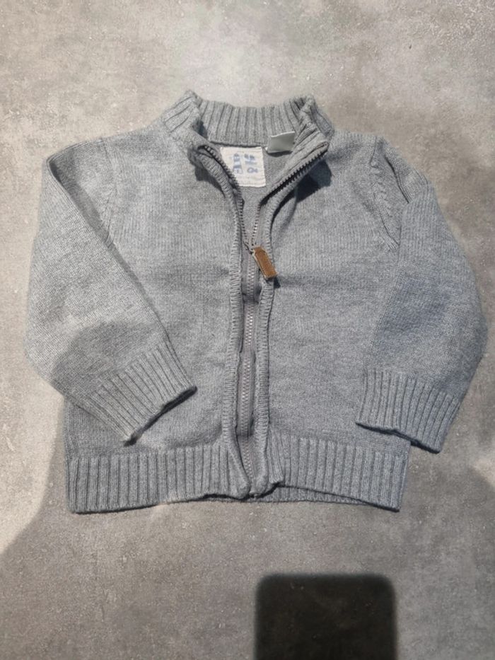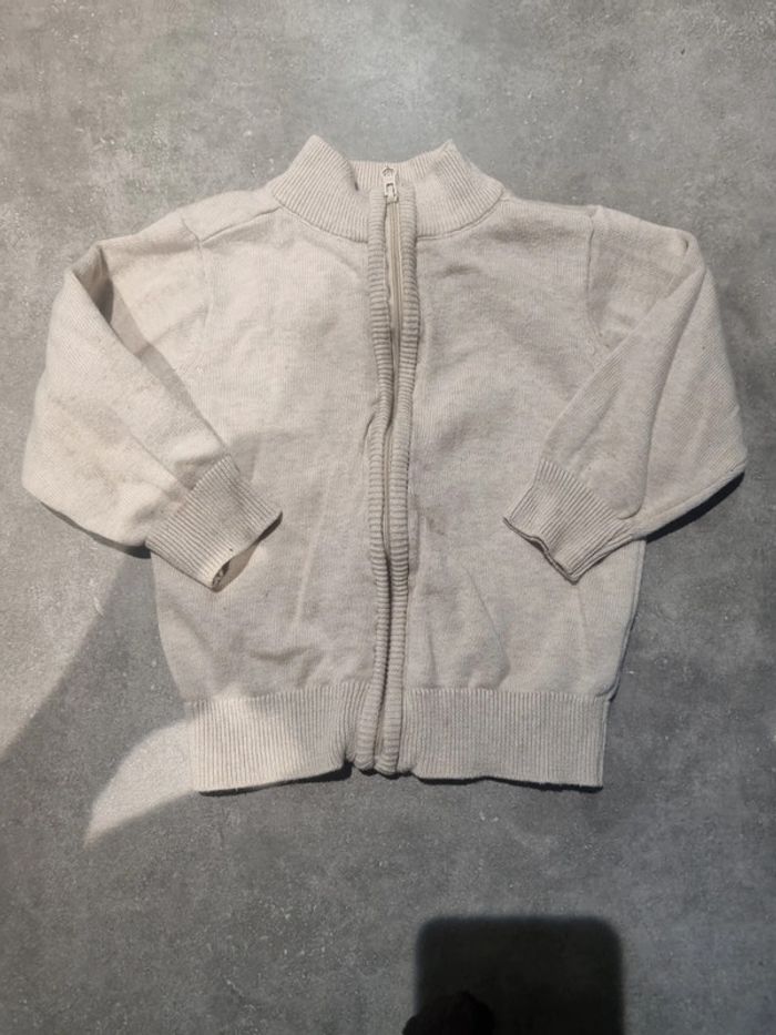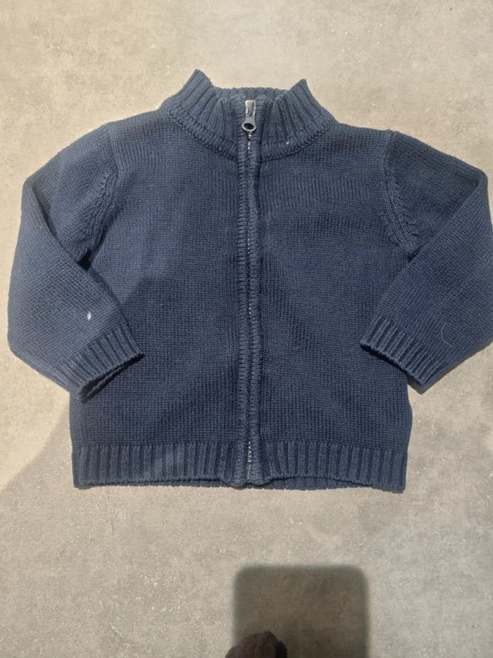 Lot de 3 gilets en bon état. Le gris et le beige taille 18 mois, le bleu taille 12 mois. Bien portés mais peuvent encore l'être.
