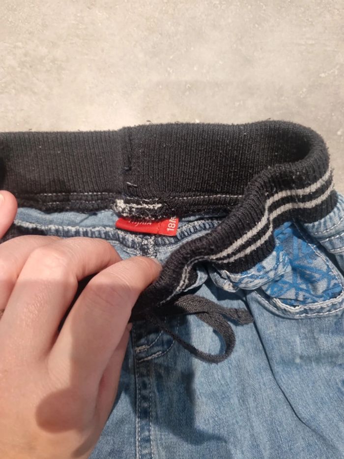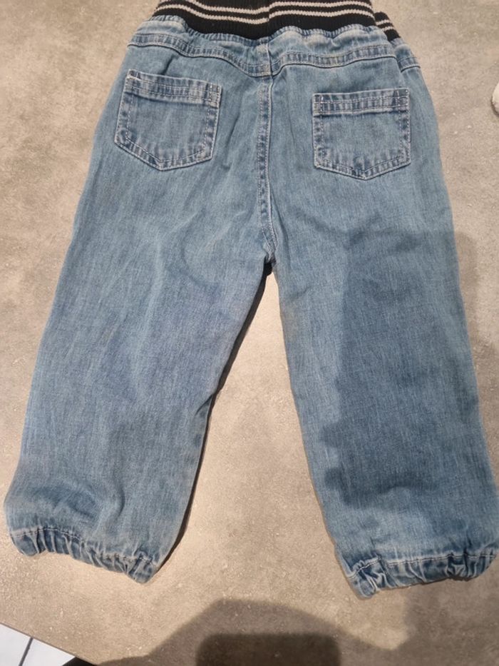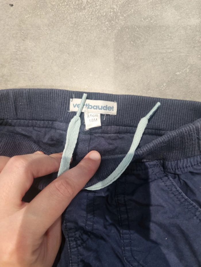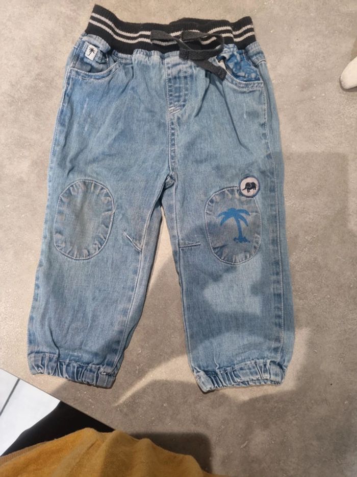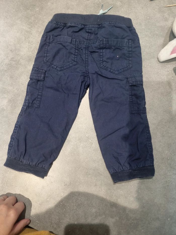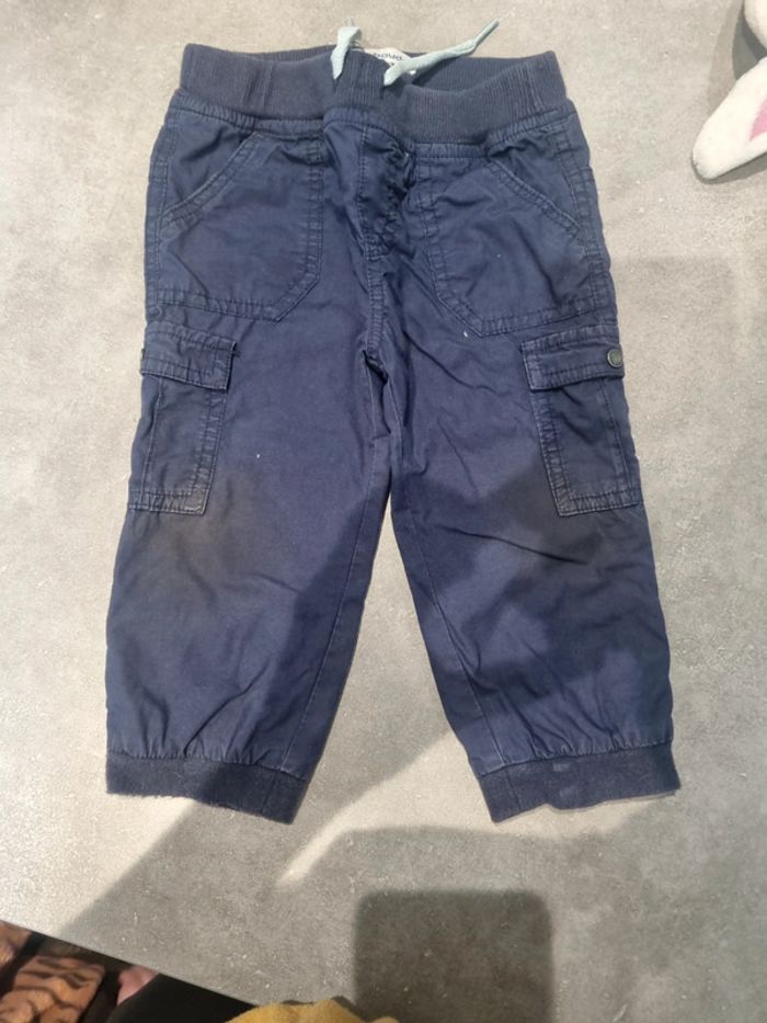 Lot de 2 pantalons en bon état. 18 mois, diverses marques. Un peu tachés aux genoux, voir photos