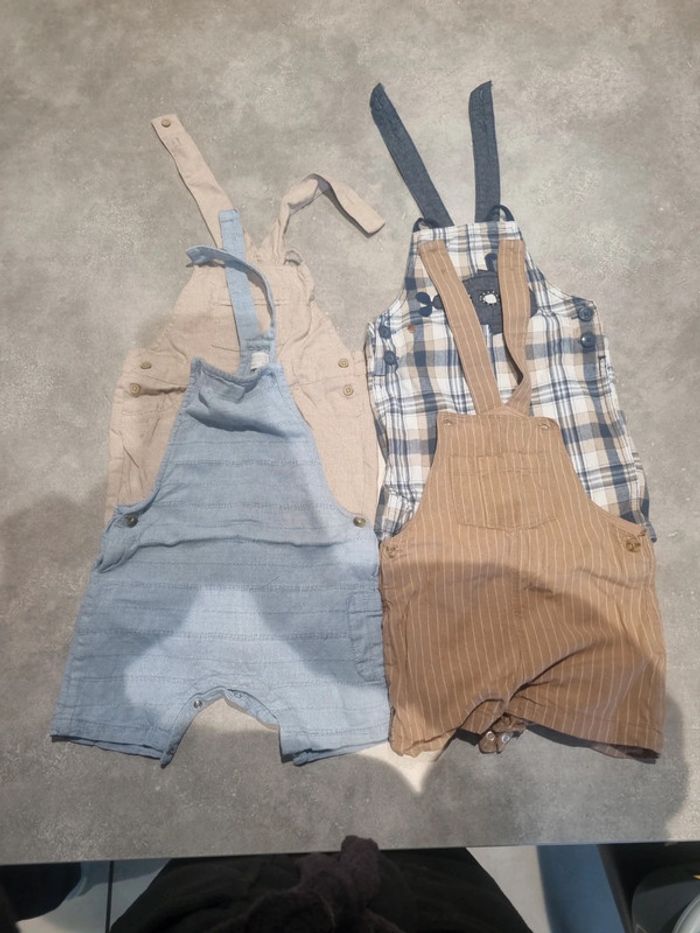 Lot de 4 salopettes short. Tout en très bon état. Taille 18 mois, diverses marques