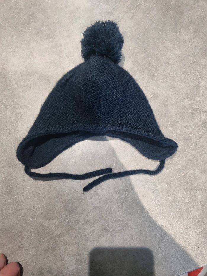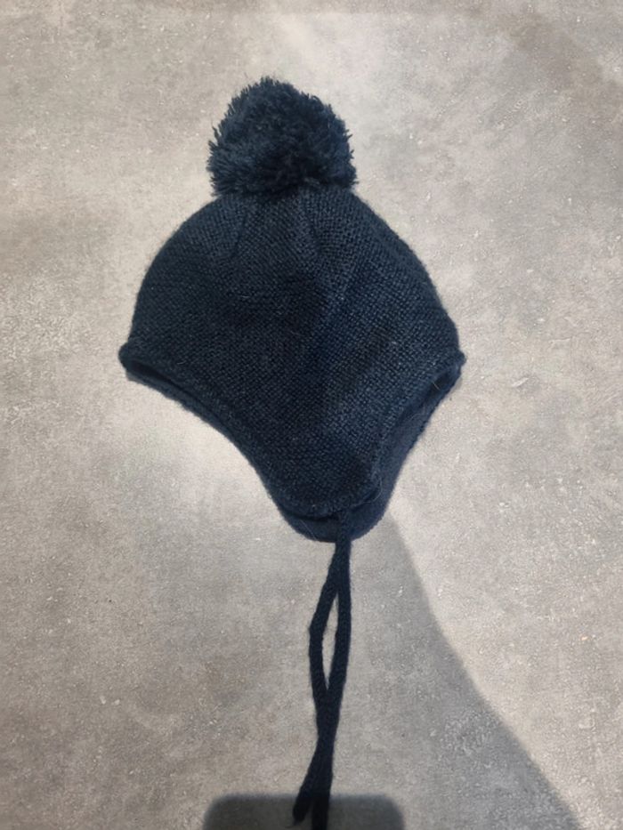 Bonnet bébé garçon bleu foncé à pompon
