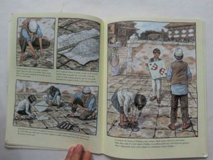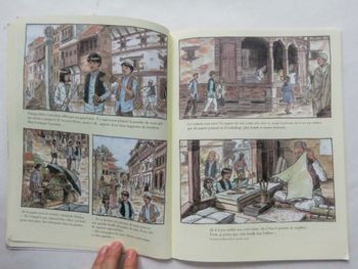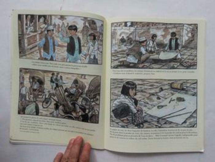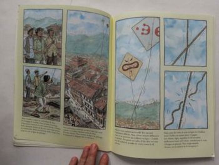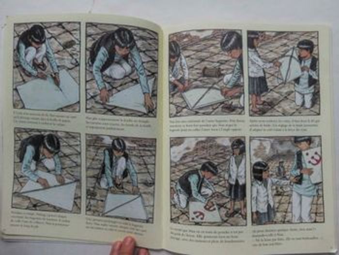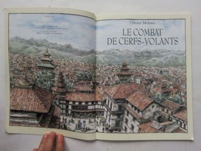 💰 PRIX FIXE ⚠️ ÉTAT : impeccable ⚠️ DÉTAILS : Auteur : Olivier Melano Dimensions : 27x 21 cm Album broché, couverture souple. 30 pages ⚠️ RÉSUMÉ : A Katmandou, capitale du Népal, Nan rêve de vaincre enfin son ennemi, le redoutable Chakku. Il ne s'agit ni de boxe, ni de lutte, mais d'un combat aérien au cours duquel les deux garçons vont s'affronter par cerfs-volants interposés. Et pour prétendre sortir vainqueur de ce duel, il faut d'abord fabriquer le meilleur cerf-volant... ❤️ MON AVIS : Fabriquer un bon cerf-volant est une vraie gageure et un pari quasi impossible si on n'a pas le matériel et l'expérience... le faire voler et gagner un combat est encore un autre type d'événement utopique. Les images sont belles. On y découvre l'architecture de la ville et l'activité de la rue. À la fin de l'album, l'auteur apporte des informations sur le pays du Népal, sur les origines du cerf-volant, et offre le plan de construction d'un cerf-volant. 📦 LIVRAISON : Envoi ou remise en main propre sur Lyon