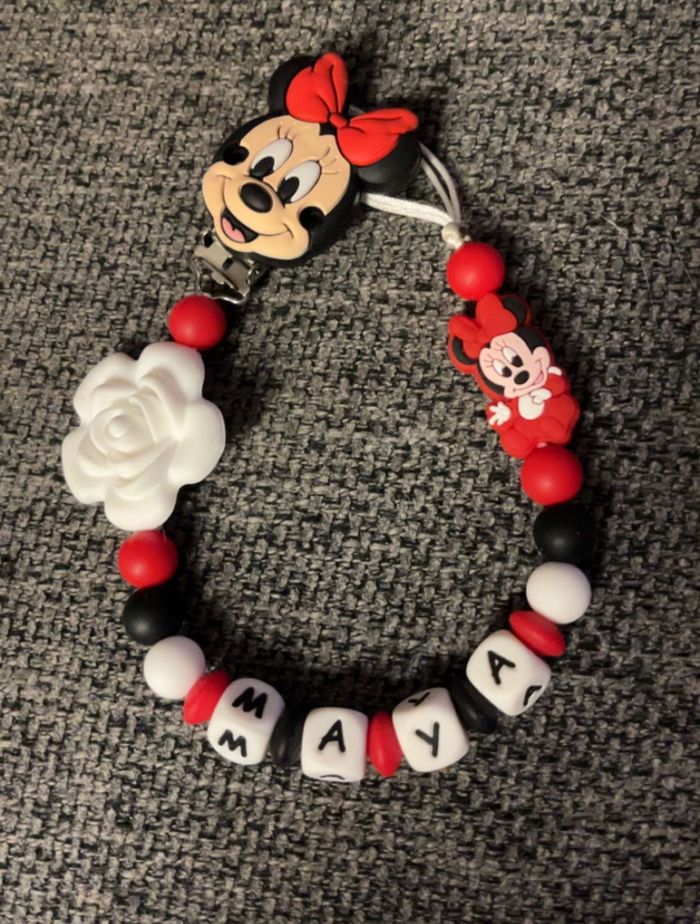 Attache tétine personnalisé en silicone ou en bois au souhait de l’acheteur . Personnalisable au choix de l’acheteur que ce soit la couleur comme le prénom ou le thème . Le fil est doublé pour plus de sécurité tout le long de l’attache tétine. N’hésitez pas à me demander et regarder mon dressing. Une photo vous sera envoyée avant l’expédition pour vous ayez un aperçu du rendu. Tous les produits sont réalisés avec du materiel spécial conçu aux bébés , enfants.