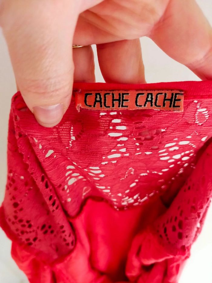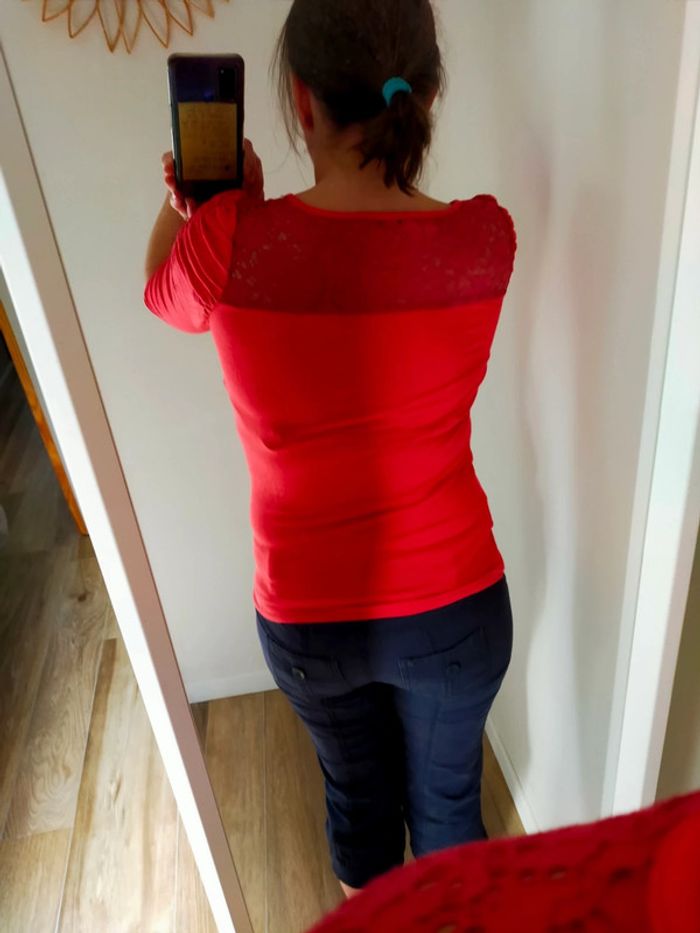 Tee short rouge dentelle sur le haut - photo numéro 1