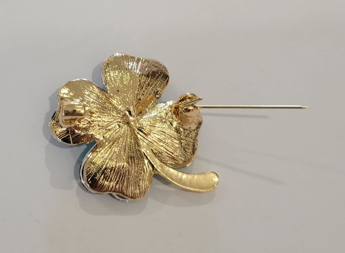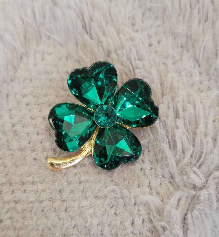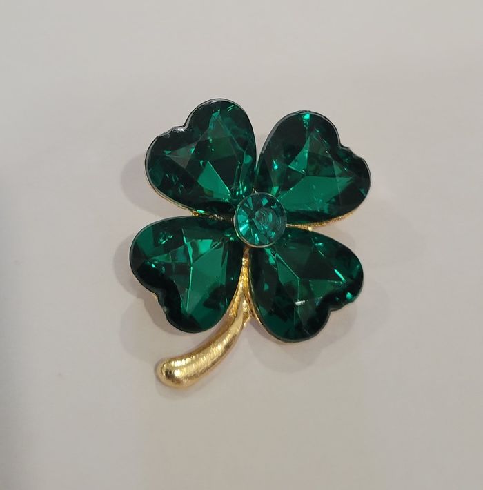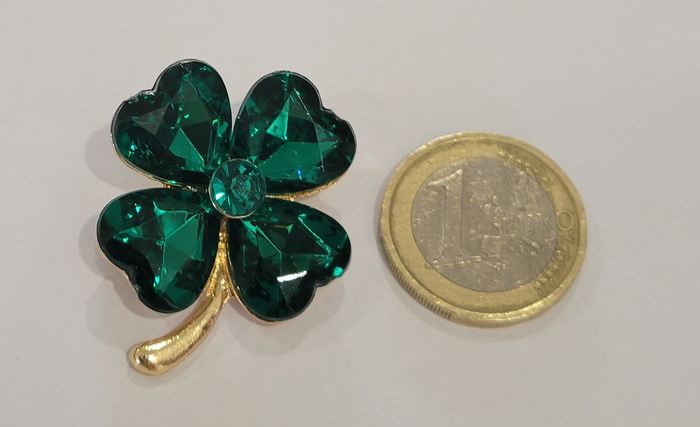 BROCHE TREFLE A QUATRE FEUILLES CRISTAL VERT ! NEUF !