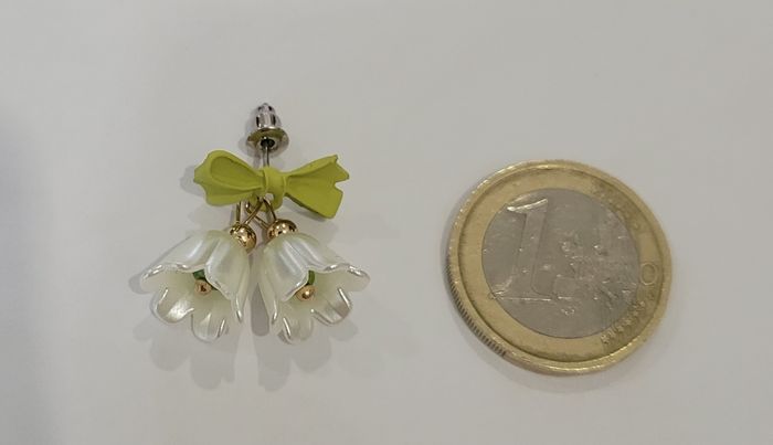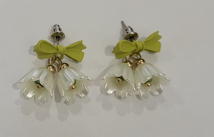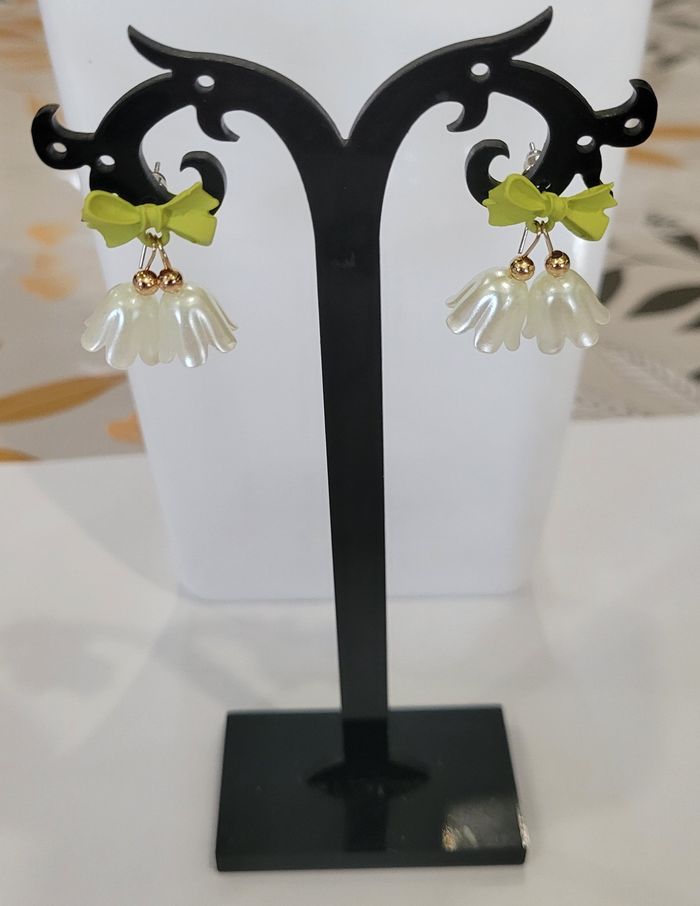 BOUCLES D'OREILLES FLEUR CLOCHETTE MUGUET NOEUD VERT ! NEUF! - photo numéro 2