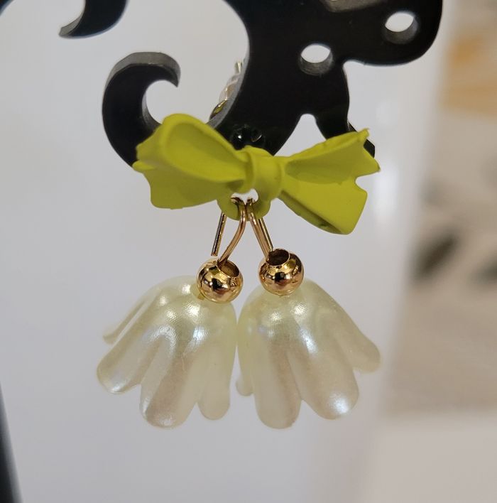 BOUCLES D'OREILLES FLEUR CLOCHETTE MUGUET NOEUD VERT ! NEUF! - photo numéro 4