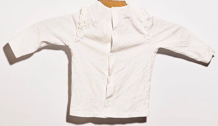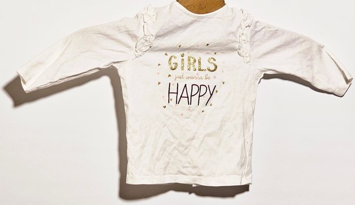 Bonjour. Vend t-shirt enfant blanc inscription "girls just wanna be happy" qui s'ouvre entièrement au niveau du dos à l'aide de pressions .
