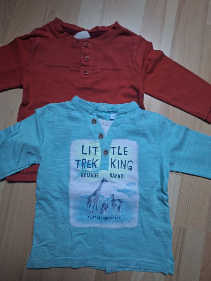 GARÇON 6 MOIS N°710 lot de 2 maillots lm -Vert d eau , imprimé 100% coton Pression au dos Gémo - rouille , bouton col 100% coton Zara Taille 6 mois 1,50€ #kelly_garçon6mois