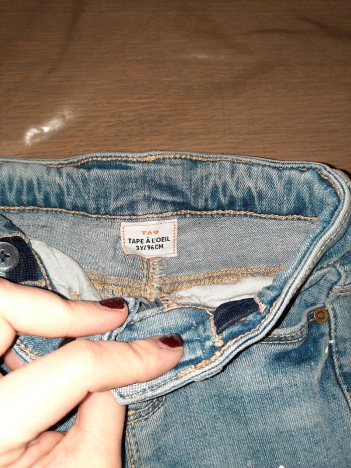 Jeans taille 3 ans Les taches noirs sont de petites paillettes sont partie au lavage.