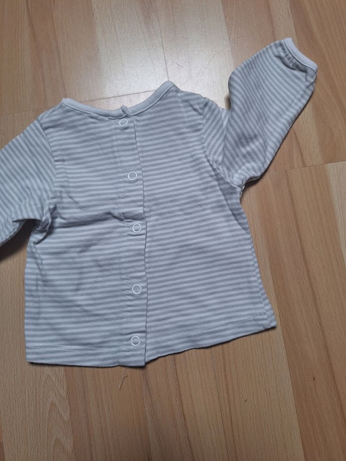 GARÇON 1 MOIS N°733 maillot rayé Blanc/ gris Pression au dos Taille 1mois Orchestra 1,50€ #kelly_garçon1mois