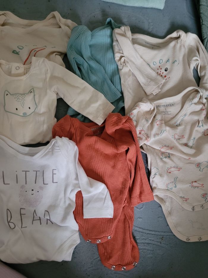 Lot 7 bodies 1 mois neuf , motif et couleur. Acheté entre 7 et 9 euros l unité