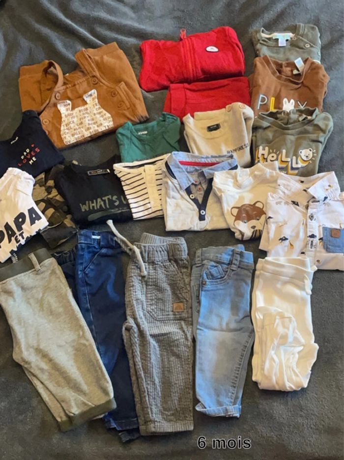 4 pantalons 1 pantalon a pied 1 ensemble jogging 5 tee shirt manches longues 2 chemises 4 pulls 1 salopette Divers marques OKAÏDI, kiabi, orchestra…