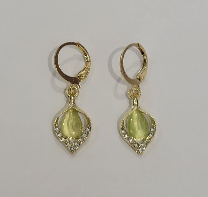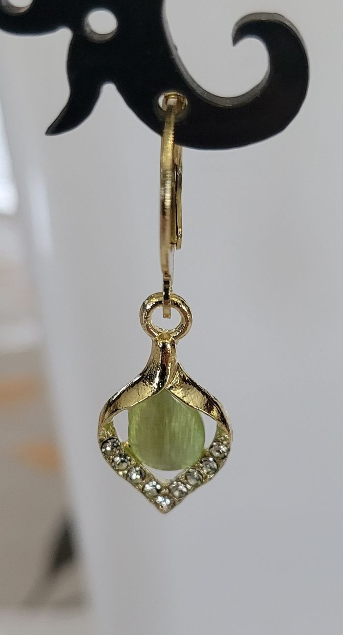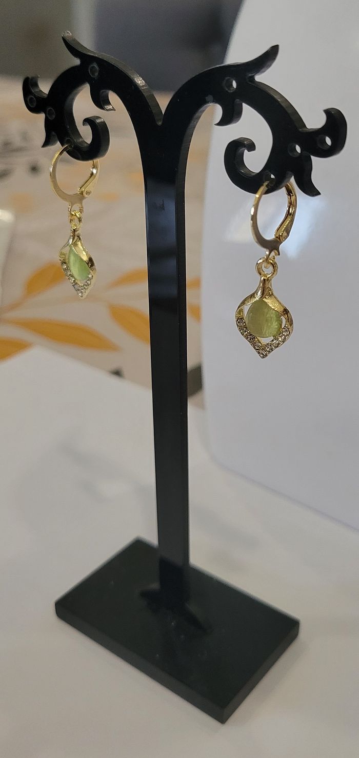 BOUCLES D'OREILLES ANNEAUX FEUILLE VERTE STRASS ! NEUF! - photo numéro 4