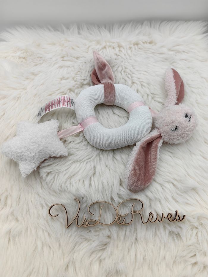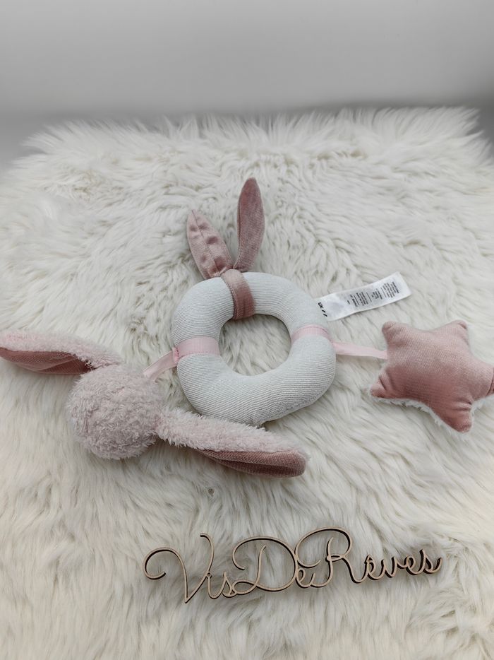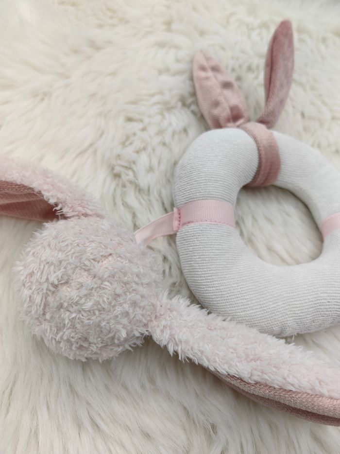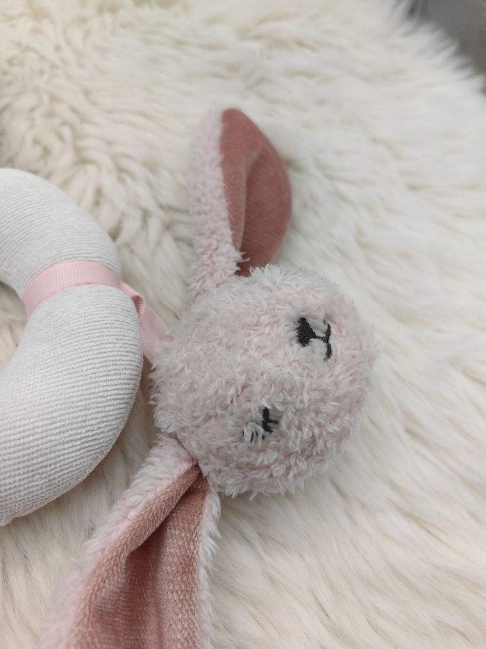 Hochet doudou d'activités Primark blanc et rose lapin étoile - photo numéro 3