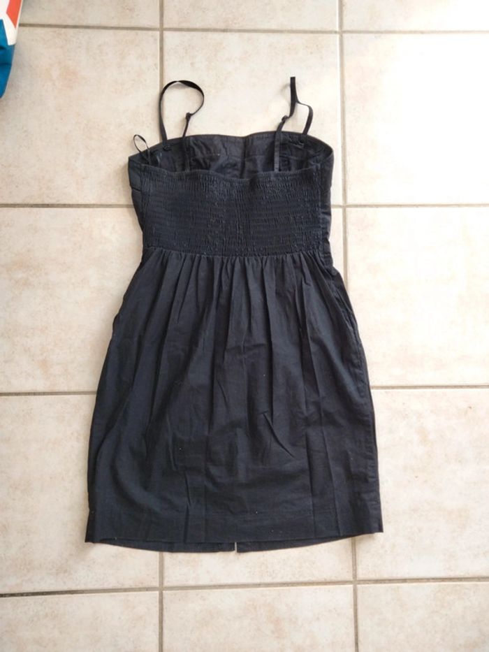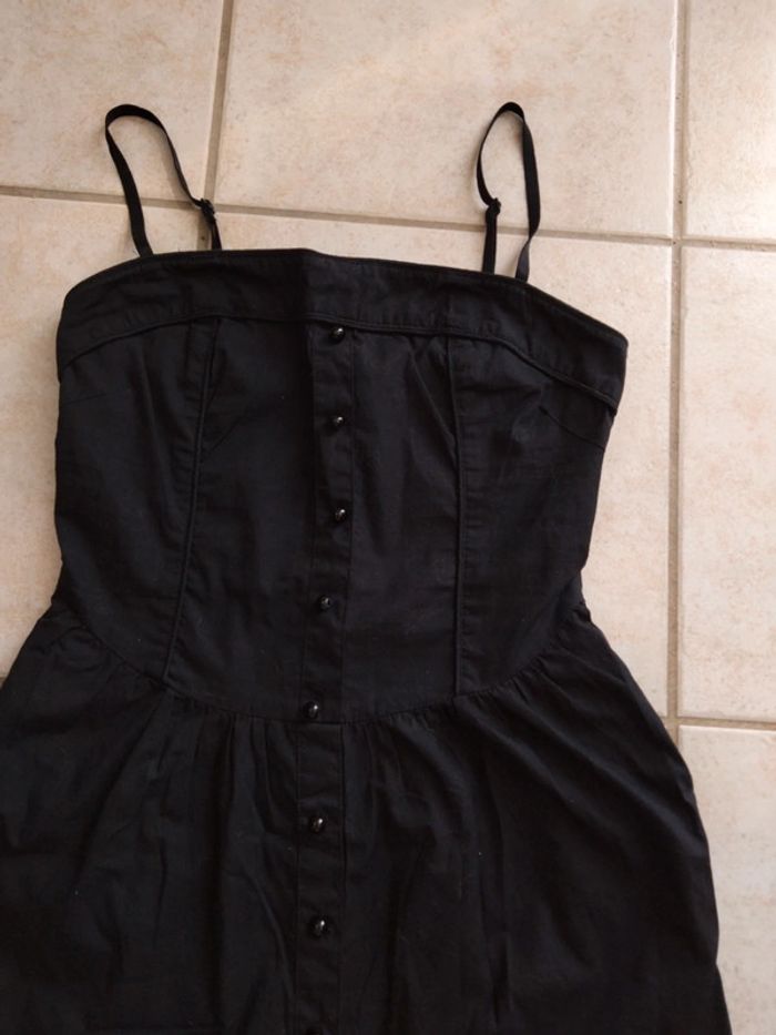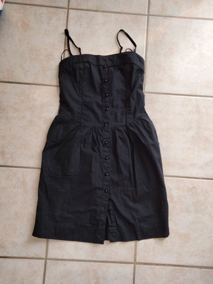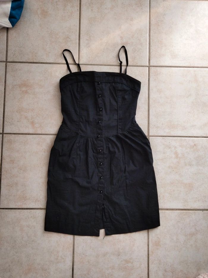 Robe noir à bretelles avec boutons Élastique à l'arrière mais manque 2 bontons!! Taille : XS/S En bon état