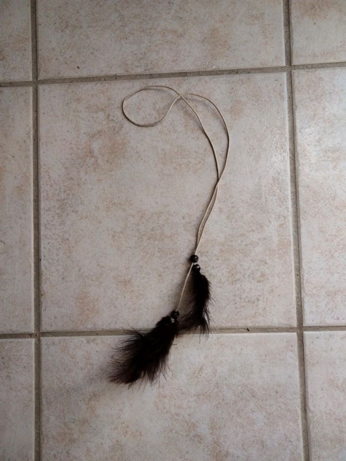 Collier plumes marrons avec cordon. Style "indien". En très bon état.