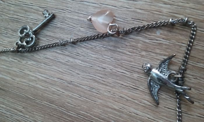 Oiseau, cœur, clef et autres breloques se baladent sur cette chaîne...