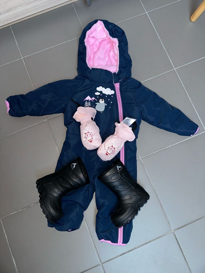 Combinaison de ski taille 18 mois et chaussure pointure 23. Portée qu’une fois comme neuf.