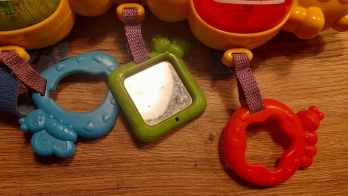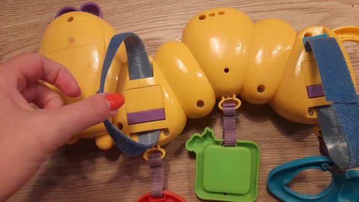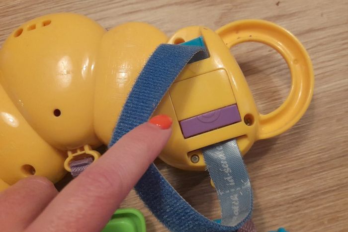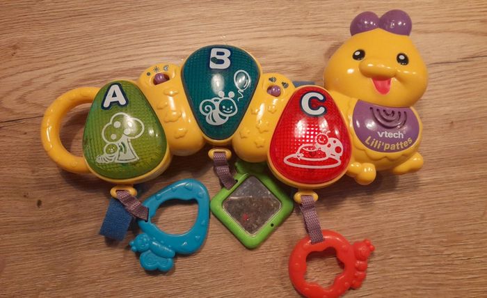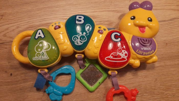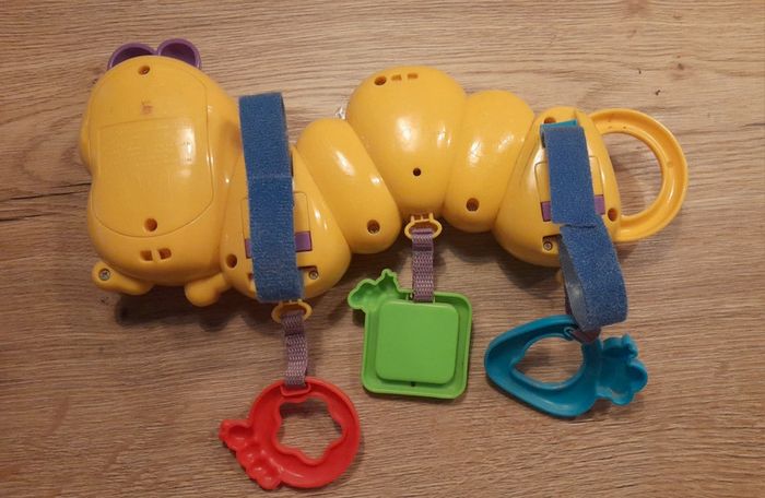 Chenille musical. Chante et parle quand on appuit sur les touches. Lumière dans les touches Toutes les touches fonctionnent sauf la bleue qui ne s'éclaire plus. Attache pas d'origine.