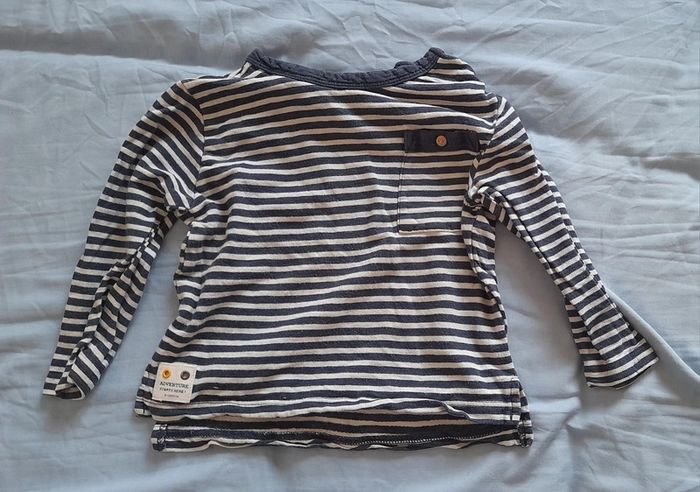 T-shirt manches longues A rayures et pochettes sur poitrine